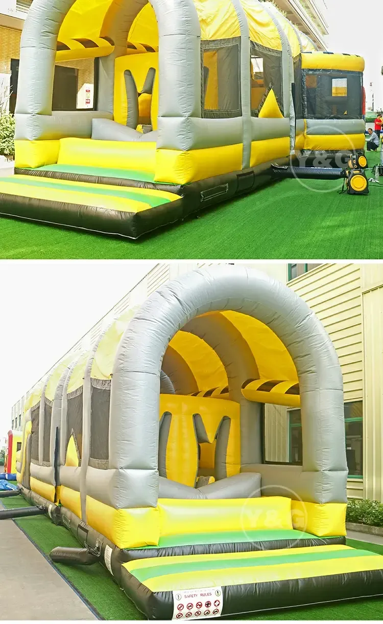 Optical Course Bounce House can take on a vertical dimension, featuring towering air-filled towers, trampolines, and bungee-assisted jumps that invite participants to defy gravity and perform acrobatic feats. These elevated challenges provide an adrenaline-fueled playground for aspiring gymnasts, parkour enthusiasts, and anyone seeking a sky-high adventure.